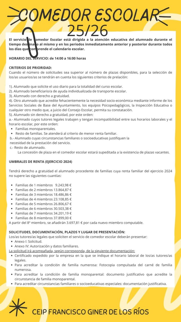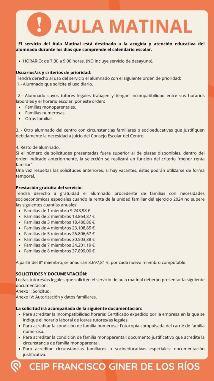 AULA MATINAL Y COMEDOR – CURSO 25/26